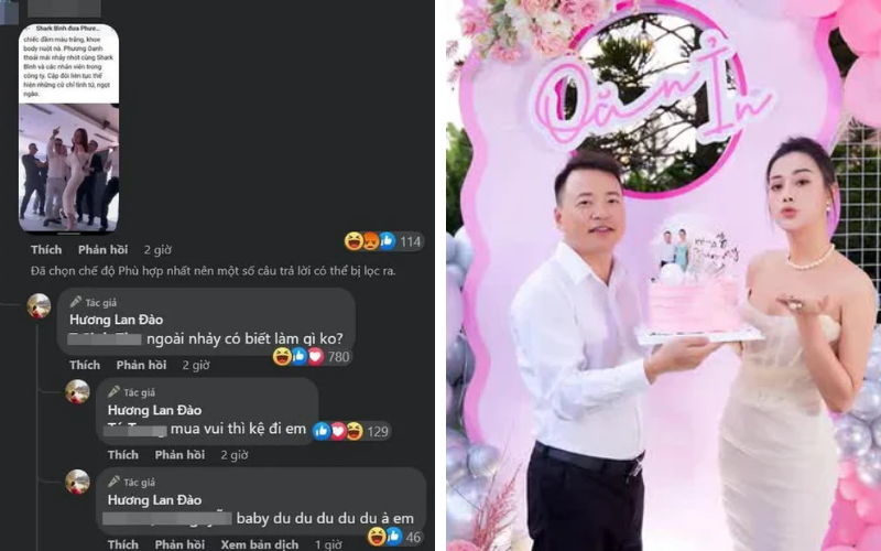 Phản ứng cực gắt của bà Đào Lan Hương khiến dân tình tranh cãi nảy lửa. Nhiều người cho rằng doanh nhân này đã “quá lời” khi liên tục buông những bình luận cay đắng về tình mới của Shark Bình. Đáp trả lại những lời cà khịa, phía Phương Oanh dường như luôn im lặng.